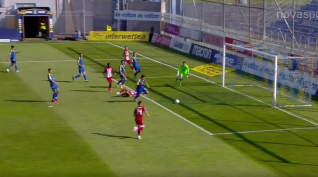 Στο πρώτο ημίχρονο του αγώνα κόντρα στον Αστέρα στην Τρίπολη, ο Ολυμπιακός είχε τεράστια ευκαιρία να ανοίξει το σκορ, όταν στο 16ο λεπτό η μπάλα πέρασε από όλους, στρώθηκε στον Ανδρούτσο στα δεξιά, όμως ο Έλληνας μπακ από πλεονεκτική θέση σημάδεψε το αριστερό κάθετο δοκάρι των γηπεδούχων.