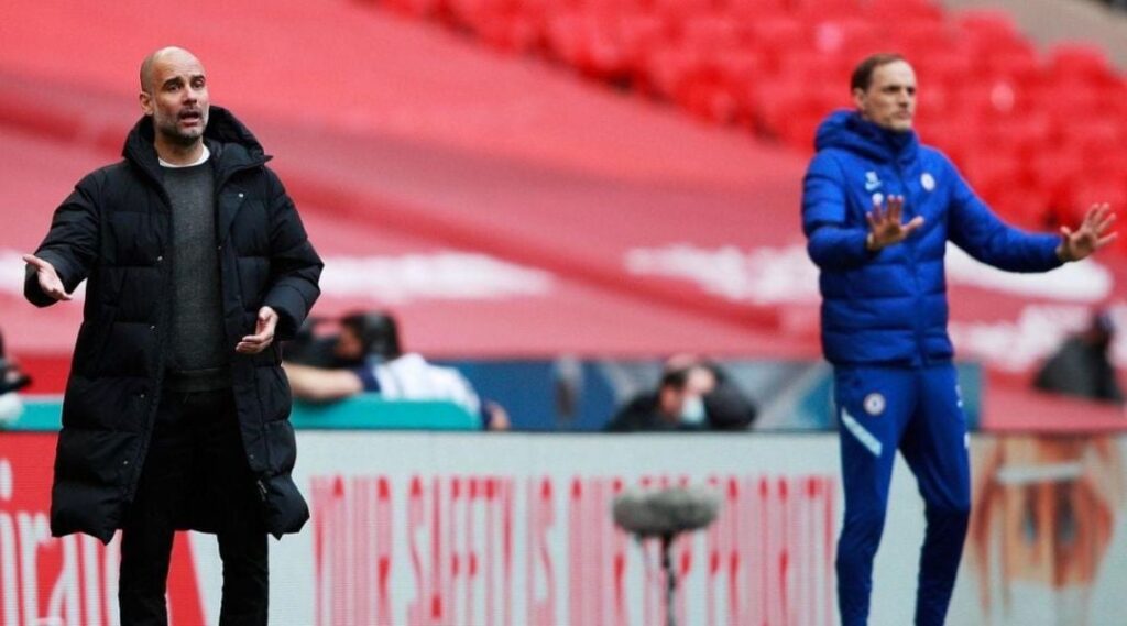 Ογδοος «εμφύλιος» στην ιστορία της κορυφαίας διασυλλογικής διοργάνωσης (δύο ομάδες από την ίδια χώρα), αλλά και όγδοη μάχη ανάμεσα στους προπονητές των δύο ομάδων, Πεπ Γκουαρντίολα (Μάντσεστερ Σίτι) και Τόμας Τούχελ (Τσέλσι) που έχουν τεθεί αντιμέτωποι σε Πρέμιερ Λιγκ και Μπουντεσλίγκα (στον πάγκο της Μπάγερν ο πρώτος, σε αυτόν των Ντόρτμουντ και Μάιντς ο δεύτερος). 3-2-2 ο απολογισμός υπέρ του Ισπανού μέχρι σήμερα.