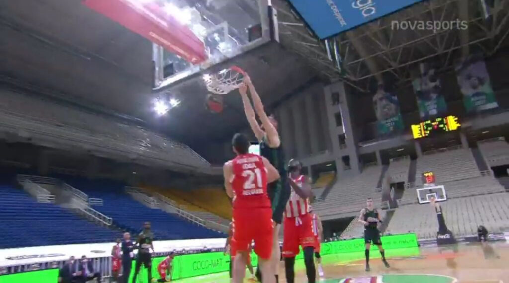 Συγκεκριμένα, ο Κροάτης γκαρντ-φόργουορντ ύψωσε την μπάλα, με τον Έλληνα σέντερ να την υποδέχεται δύσκολα, ωστόσο αυτό δεν τον εμπόδισε να καρφώσει με μανία στο καλάθι του Ερυθρού Αστέρα!
