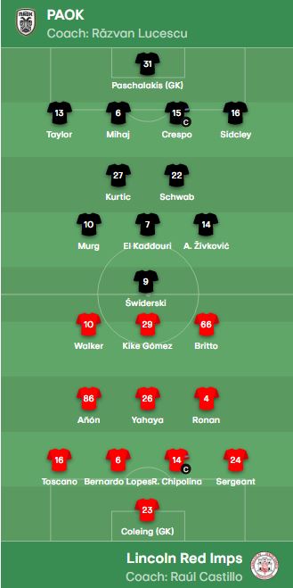 Οι ενδεκάδες στο ΠΑΟΚ – Λίνκολν