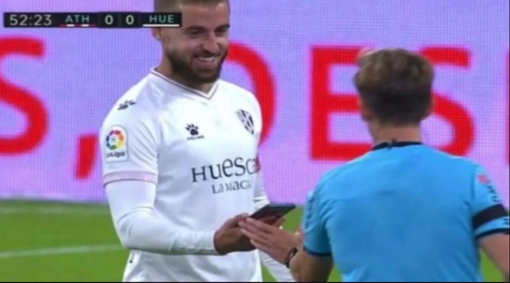 Το τρομερό είναι ότι ο… περίεργος διαιτητής έριξε και μια ματιά στο κινητό, όπως και οι άνθρωποι της Ουέσκα που το παρέλαβαν, σκρολάροντας μάλιστα…