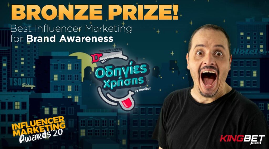 Η Kingbetmedia ξεχώρισε στα Influencer Marketing Awards 2020 και βραβεύτηκε με το Bronze Prize για τις «Οδηγίες Χρήσης» by Novibet με τον Αλέξανδρο Τσουβέλα, στην ενότητα «Influencer Marketing for Brand Awareness»!