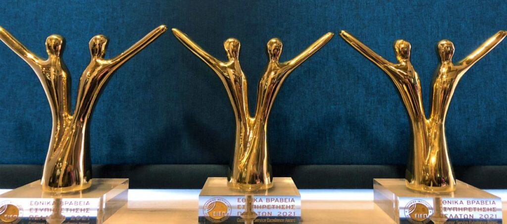 Ο αναγνωρισμένος θεσμός των Εθνικών Βραβείων Εξυπηρέτησης Πελατών της ΕΙΕΠ, κατ’ αντιστοιχία με τις πρακτικές σε όλη την Ευρώπη, επιβραβεύει και προβάλλει σε ετήσια βάση καινοτόμες και εξαιρετικές πρακτικές, που χρησιμοποιούνται στην εξυπηρέτηση του πελάτη και συμβάλλουν στην καλύτερη εμπειρία του, με στόχο τη δημιουργία και τη διάχυση εξειδικευμένης γνώσης καθώς και την επιβράβευση των καλύτερων στελεχών στην εξυπηρέτηση πελατών ανά κλάδο και επίπεδο.