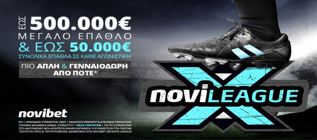 *Ο ΔΙΑΓΩΝΙΣΜΟΣ ΕΙΝΑΙ ΔΩΡΕΑΝ & ΔΕΝ ΑΠΑΙΤΕΙΤΑΙ ΣΥΜΜΕΤΟΧΗ ΣΤΑ ΠΑΙΓΝΙΑ. ΙΣΧΥΟΥΝ ΟΡΟΙ & ΠΡΟΫΠΟΘΕΣΕΙΣ ΔΙΑΘΕΣΙΜΟΙ ΣΤΟ NOVIBET.GR/NOVI-LEAGUE