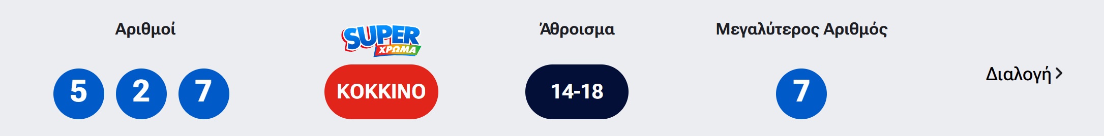- Το άθροισμα των αριθμών της κλήρωσης.