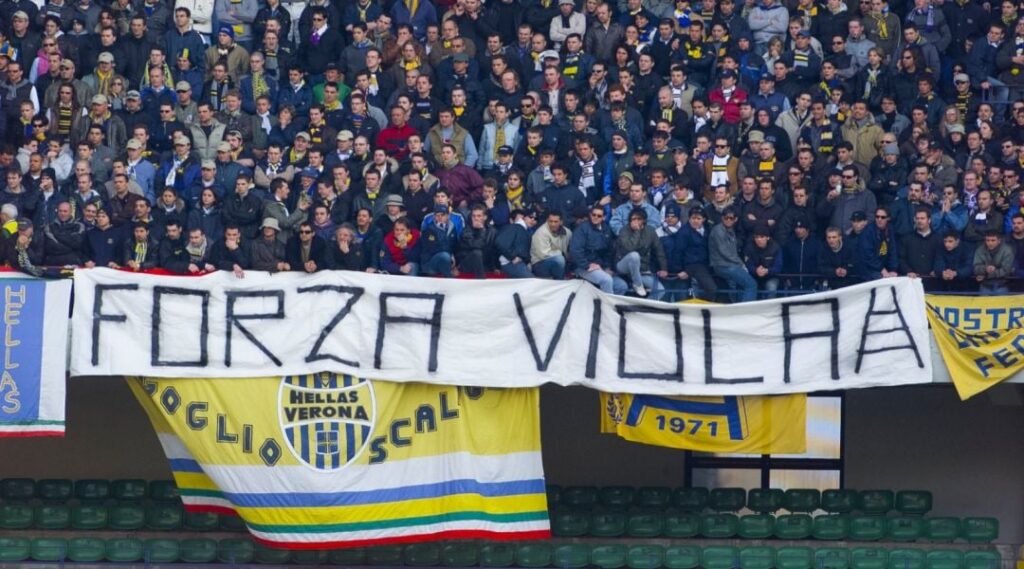 Ακόμα πιο στενές είναι οι σχέσεις μεταξύ Βερόνα και Φιορεντίνα, με την αδελφοποίηση των δύο ομάδων να κρατάει περισσότερα από 40 χρόνια (χαρακτηριστικό το πανό της φωτογραφίας). Κοιτάζοντας τη βαθμολογία, βλέπω ότι οι «βιόλα« που ξεκίνησαν τη σεζόν με στόχο την έξοδο στην Ευρώπη και που έχουν 14 διεθνείς ποδοσφαιριστές στο ρόστερ τους βρίσκονται ακριβώς πάνω από την επικίνδυνη ζώνη, ενώ η Βερόνα έχει ήδη πάρει σε 12 αγωνιστικές τους μισούς από τους βαθμούς που χρειάζεται για να εξασφαλίσει την παραμονή.