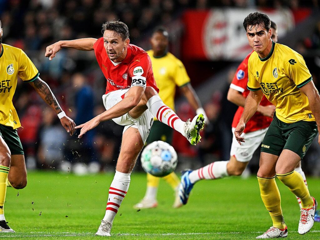 Στο πρωτάθλημα, έκανε το 5/5 (2η σερί χρονιά που τα καταφέρνει και 4η συνολικά στην ιστορία της) επικρατώντας στο livescore 2-0 της Ναϊμέγκεν. Τα πάντα ουσιαστικά κρίθηκαν νωρίς με την Αϊντχόφεν να αποκτά αριθμητικό πλεονέκτημα μόλις στο 8’ και να διαμορφώνει το τελικό σκορ στο εξάλεπτο 11’-16’. Δεν έδειξε ιδιαίτερο ζήλο στα υπόλοιπα 75 λεπτά της αναμέτρησης για να αυξήσει κι άλλο το δείκτη του σκορ, παρά το 77% κατοχή μπάλας και τις 26 συνολικά τελικές προσπάθειες προς την αντίπαλη εστία.