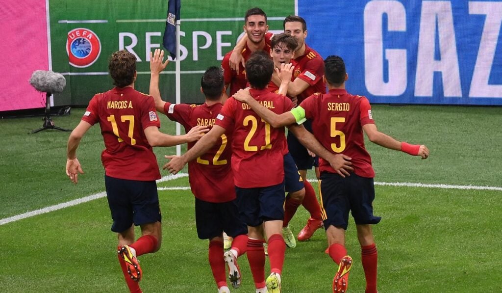 Χωρίς κλασικό «εννιάρι», με δύο αριστεροπόδαρους στόπερ, τον 17χρονο Γκάβι να κάνει ντεμπούτο με τη φανέλα του βασικού, με τα επίσης… αμούστακα Γερεμί Πίνο, Μπράιαν Χιλ να λάμπουν και σκόρερ των δύο τερμάτων τον Φεράν Τόρες, πέρασε στον τελικό και θα μπορούσε να το κάνει με μεγαλύτερο σκορ.
