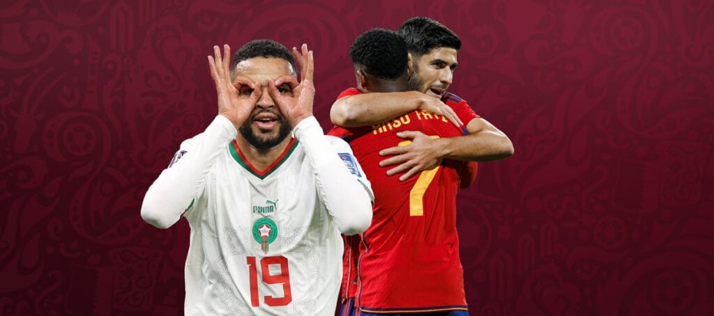 * Οι δύο ομάδες αναμετρήθηκαν και στο Μουντιάλ του 2018, για την 3η αγωνιστική της φάσης των ομίλων, με το ματς να λήγει 2-2. Μάλιστα, το Μαρόκο προηγήθηκε δύο φορές, με τον Άσπας να «γλιτώνει» τους Ισπανούς στις καθυστερήσεις.