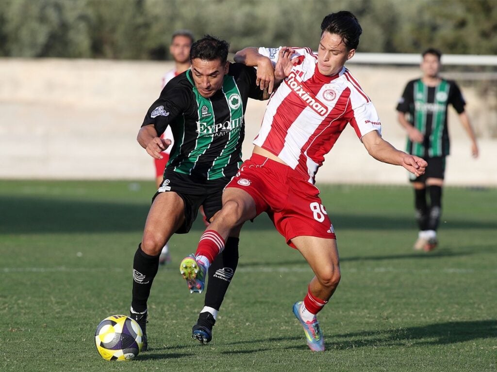Οι Πειραιώτες, αν και βρέθηκαν πίσω στο σκορ μόλις στο πρώτο λεπτό από το γκολ του Χατζηδημητρίου, αντέδρασαν άμεσα. Ο Ζουγλής ισοφάρισε σε 1-1 με σουτ στο 8′, ενώ 10 λεπτά αργότερα ο Πνευμονίδης ολοκλήρωσε την ανατροπή, διαμορφώνοντας το τελικό 2-1 υπέρ των “ερυθρόλευκων”.
