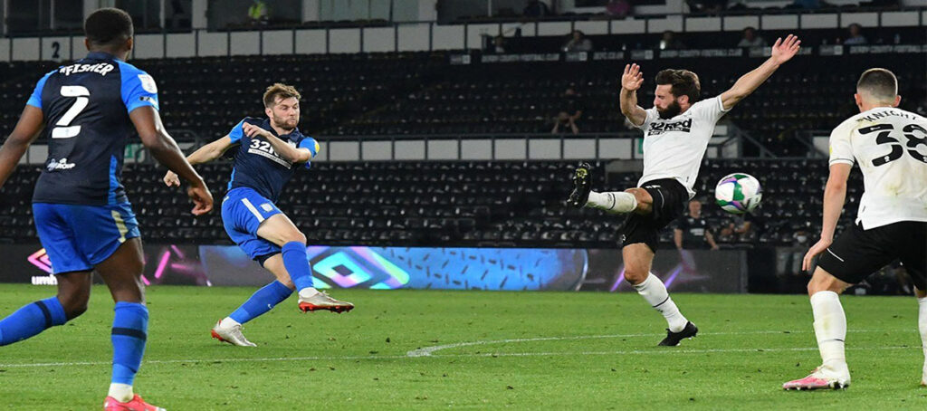 Η «λευκή» ισοπαλία που παραχώρησε στη Σουόνσι πριν από τη διακοπή την κράτησε αήττητη στο «Πράιντ Παρκ» (2-4-0). Οι φιλοξενούμενοι ήταν αυτοί που έκλεψαν τις εντυπώσεις στο πρώτο και το τελευταίο κομμάτι του αγώνα, έχοντας και τις περισσότερες τελικές προσπάθειες. Στο μεσοδιάστημα η Ντέρμπι φάνηκε να συνέρχεται με κορυφαία στιγμή της την 3πλή ευκαιρία του Λόρενς, ο οποίος νικήθηκε από τον Χάμερ.