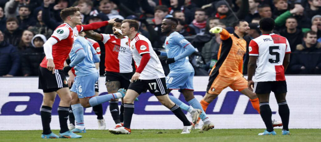 Αδικο και πλασματικό το 1-1 με το οποίο ολοκληρώθηκε το πρώτο ημίχρονο (εμφανώς ανώτερη η Φέγενορντ, από θέση οφσάιντ ισοφάρισε η Σλάβια). Στο δεύτερο μέρος βρέθηκε πίσω στο σκορ (67’), ωστόσο το γύρισε άμεσα (2-2 στο 74’, 3-2 στο 86’). Και ενώ όλα έδειχναν ότι θα έπαιρνε τη νίκη δέχτηκε στο 95’ το 3-3.