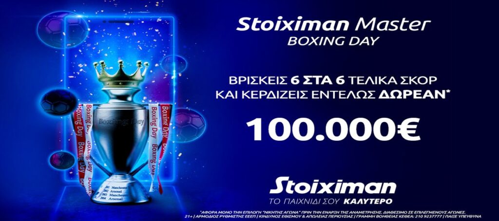 Stoiximan Master έως 100.000€ εντελώς δωρεάν* στην Boxing Day!