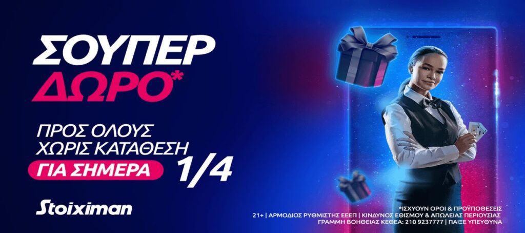 Σούπερ δώρο* χωρίς κατάθεση την Παρασκευή στη Stoiximan!