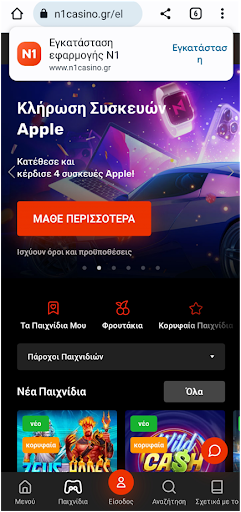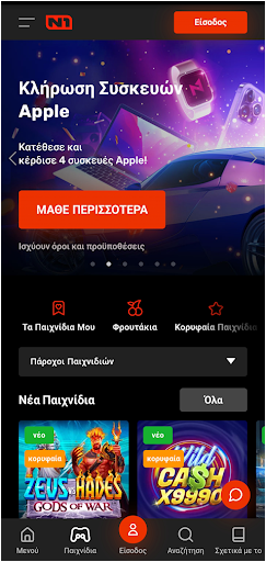 Για να μπεις στο Ν1 Casino πατάς στο κουμπί “Είσοδος”, το οποίο θα το βρεις πάνω δεξιά τόσο στο desktop σου, όσο και στο κινητό σου.