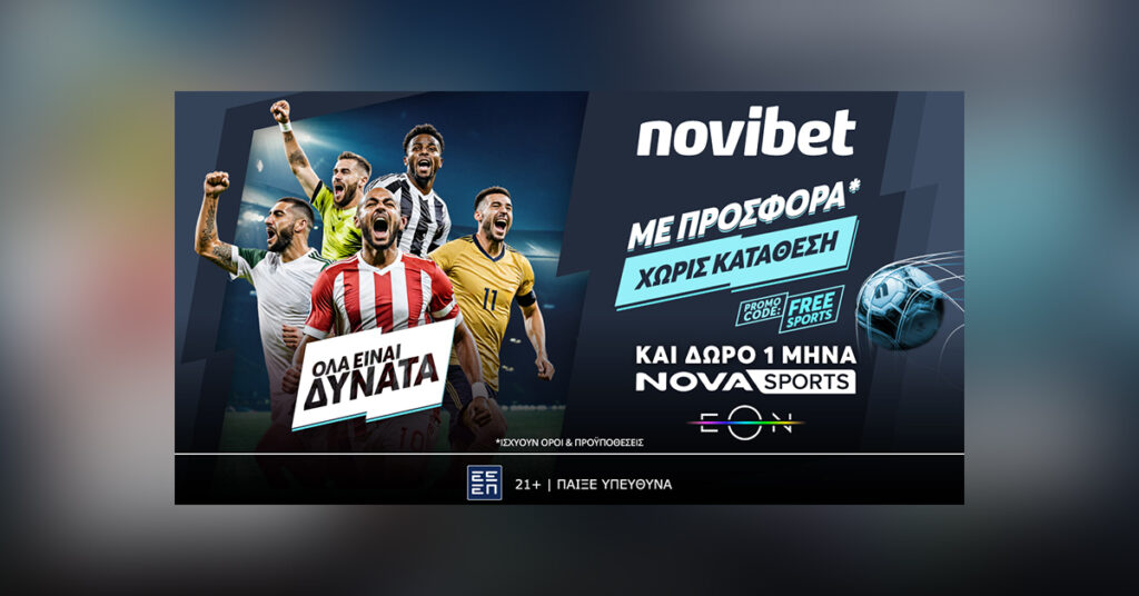 Στη Novibet απολαμβάνεις ποδοσφαιρική δράση δωρεάν* χάρη στη νέα σούπερ προσφορά* με δώρο 1 μήνα NOVASPORTS!