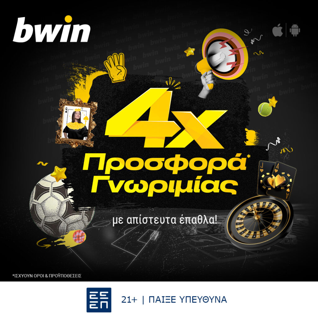 bwin – Σούπερ τετραπλή προσφορά* γνωριμίας με μοναδικά έπαθλα*!
