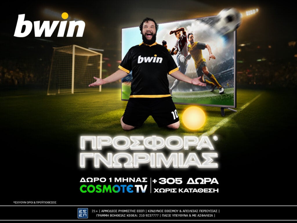 bwin – Άπαιχτη προσφορά* γνωριμίας και δώρο* 1 μήνας Cosmote TV!