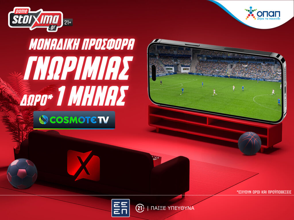 Αποκλειστική προσφορά* γνωριμίας με δώρο 1 μήνα Cosmote TV από το Pamestoixima.gr!