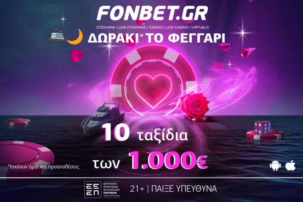 Τον Φερβρουάριο η Fonbet σε υποδέχεται με έναν σούπερ διαγωνισμό για 10 ταξίδια συνολικής αξίας 10.000€ και μία μοναδική προφορά* χωρίς κατάθεση με promo code LOVE3240!