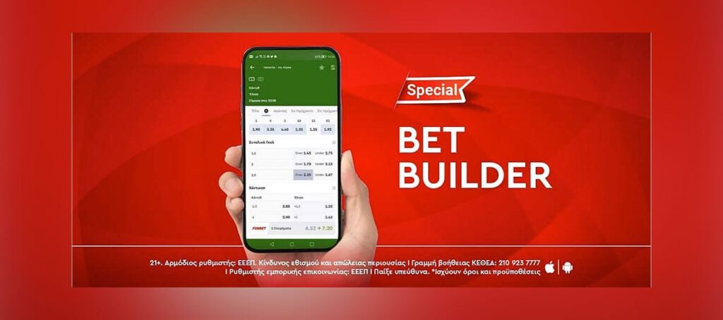 Τώρα, το παιχνίδι γίνεται ακόμη πιο διασκεδαστικό με το bet builder! Έχεις πλέον τη δυνατότητα να αυξήσεις ακόμα περισσότερο την απόδοση. Μπορείς να προσθέσεις διαθέσιμα στοιχήματα από τον ίδιο αγώνα, αλλά και οποιαδήποτε στοιχήματα από άλλον αγώνα στο ίδιο δελτίο στοιχήματος!