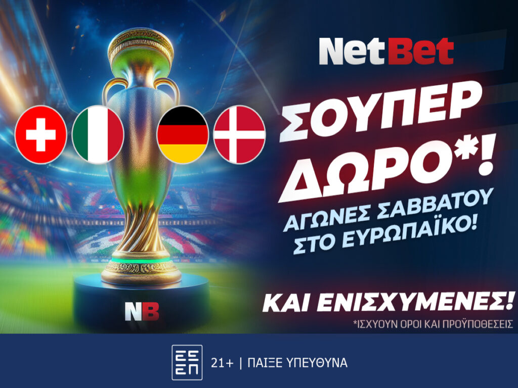 Ελβετία – Ιταλία και Γερμανία – Δανία είναι οι, χρονικά, πρώτοι αγώνες της φάσης των «16» του Ευρωπαϊκού 2024 κι εσύ απολαμβάνεις το Ευρωπαϊκό με σούπερ αποδόσεις και μοναδικές προσφορές* από τη NetBet!