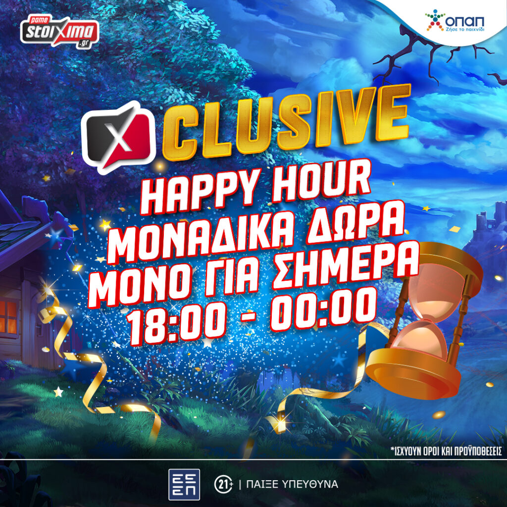 Το Happy Hour του Pamestoixima.gr προσφέρει καθημερινά μοναδικές εκπλήξεις*, από τις 18:00 μέχρι τις 00:00.