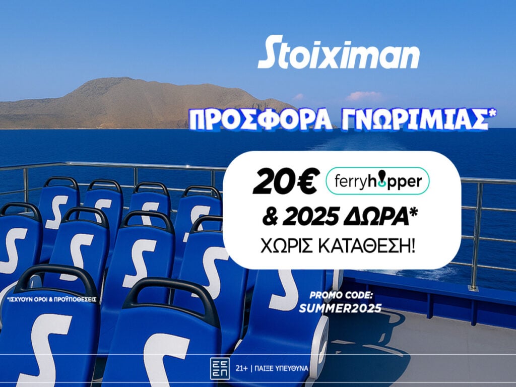 20€ Ferryhopper & 2025 Δώρα* χωρίς κατάθεση* από τη Stoiximan!