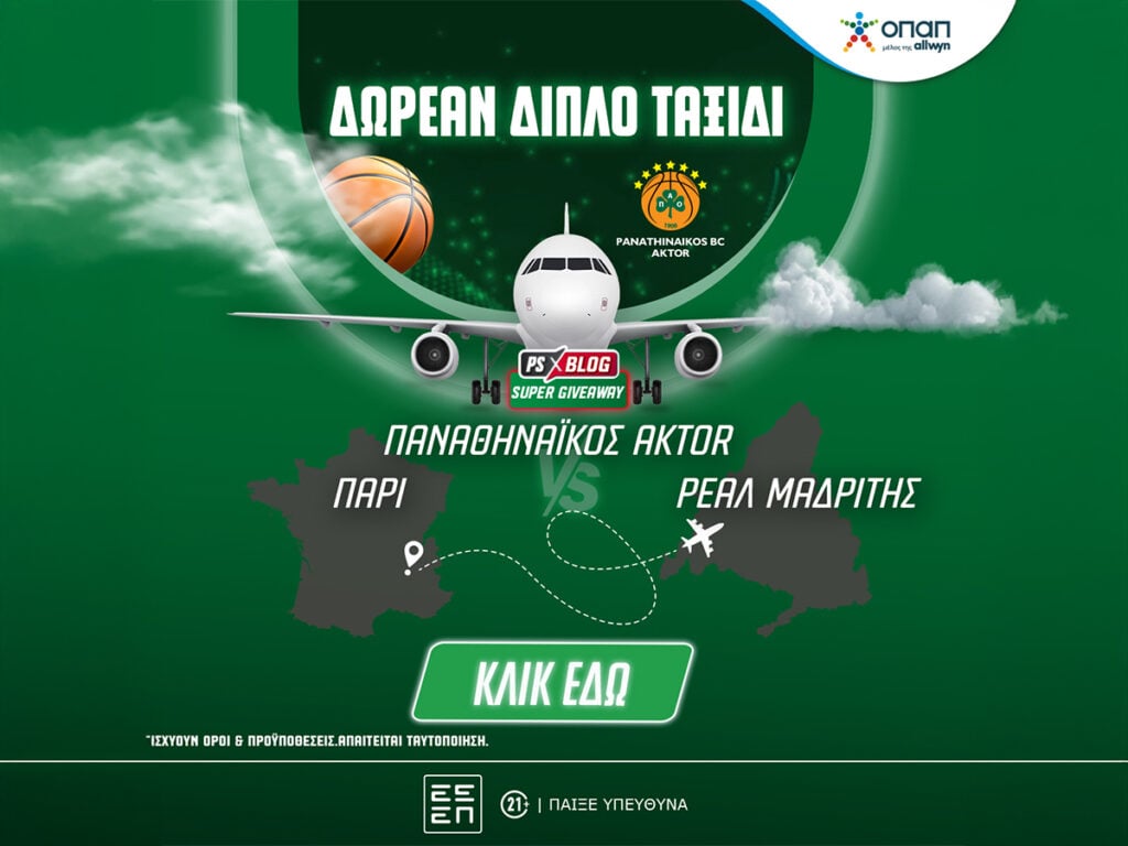 Το PS Blog προσφέρει* ένα διπλό ταξίδι που θα θυμάσαι για καιρό! Μαζί με το plus one σου, έχεις την ευκαιρία να ταξιδέψεις μαζί με τον Παναθηναϊκό AKTOR σε Παρίσι και Μαδρίτη και να ζήσεις ανεπανάληπτες στιγμές!