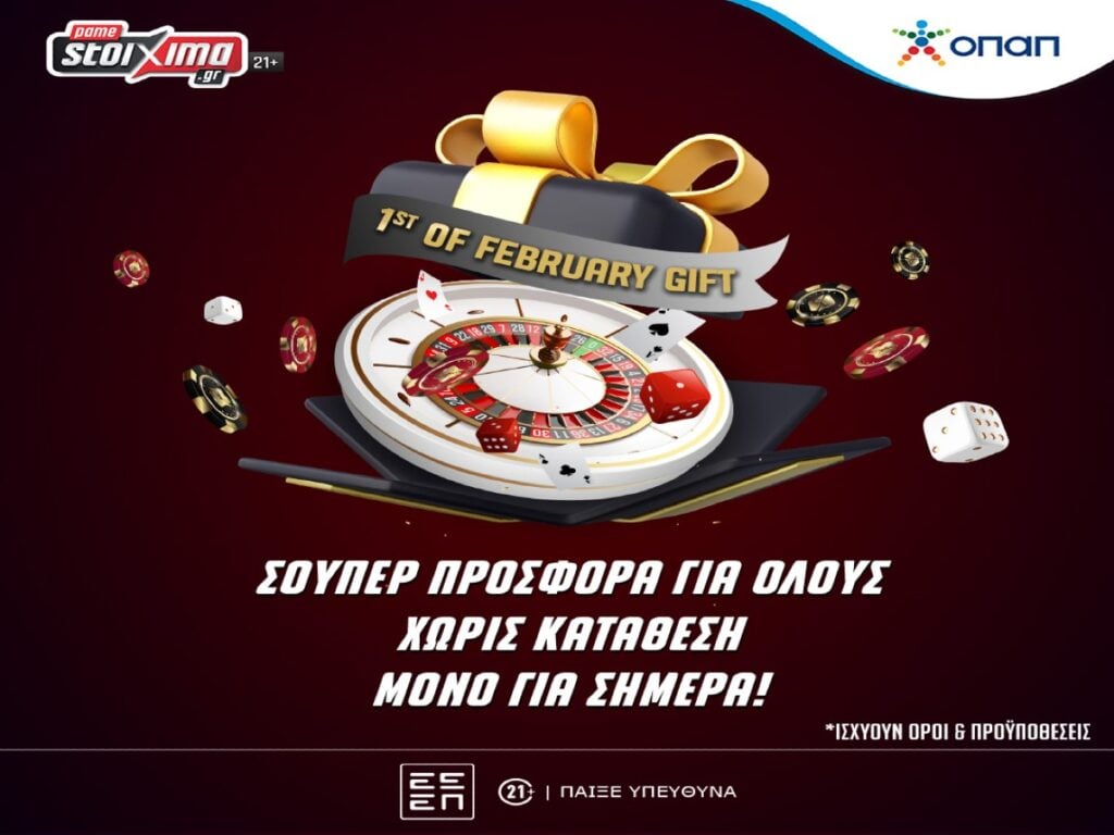 Ο πρώτος μήνας της άνοιξης αφού στο Pamestoixima.gr βρίσκεις σούπερ προσφορά* χωρίς κατάθεση, μόνο για σήμερα! Η προσφορά* ισχύει μέχρι το βράδυ της Παρασκευής (01/03, 23:59).