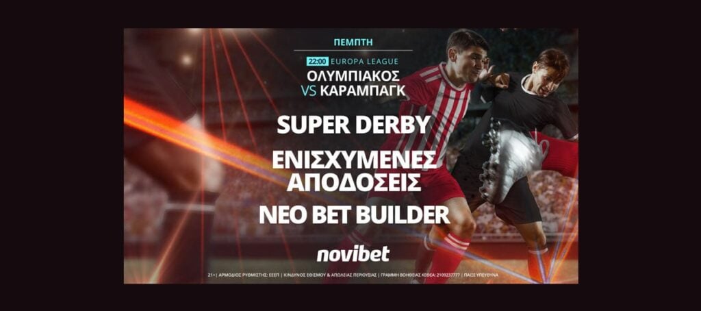 Novibet: Ολυμπιακός-Καραμπάγκ με 0% γκανιότα* και πληθώρα ειδικών στοιχημάτων