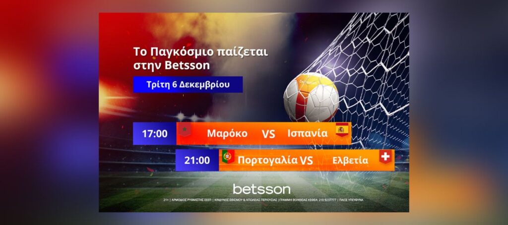 Σήμερα πέφτει η αυλαία της φάσης των «16» στο Παγκόσμιο και συμπληρώνεται το παζλ των προημιτελικών της διοργάνωσης. Το στοιχηματικό ενδιαφέρον έχει εκτοξευθεί στα ύψη και στην πλατφόρμα της Betsson, θα ζήσετε μια μοναδική εμπειρία με επιλογές για ποντάρισμα σε απίθανες αποδόσεις. Η Ισπανία αφού δεν απέφυγε το κάζο της ήττας κόντρα στην Ιαπωνία, θέλει να επανέλθει στις καλές εμφανίσεις. Είναι το φαβορί απέναντι στο Μαρόκο που ως τώρα είναι μια από τις εντυπωσιακές ομάδες στη διοργάνωση και έχει διατηρήσει την αμυντική σταθερότητα που το οδήγησε μέχρι το Παγκόσμιο. Η Πορτογαλία που… πετώντας κάτω από τα ραντάρ μοιάζει ικανή να φτάσει πολύ μακριά παίζει με την Ελβετία, η οποία επίσης έχει δείξει θετικά στοιχεία. Αυτά είναι η μεγάλη τακτική ποικιλία, με ικανότητα να παίξει με διαφορετικά στιλ και να κάνει ό,τι χρειάζεται για να πάρει το αποτέλεσμα.