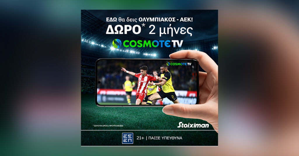 Ολυμπιακός – ΑΕΚ με super έπαθλο* και 2 μήνες Cosmote TV!