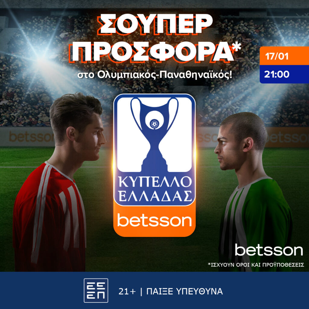 Οι μάχες στο Κύπελλο Ελλάδας Betsson έχουν τεράστιο ενδιαφέρον και παίζονται εδώ με σούπερ προσφορά*!