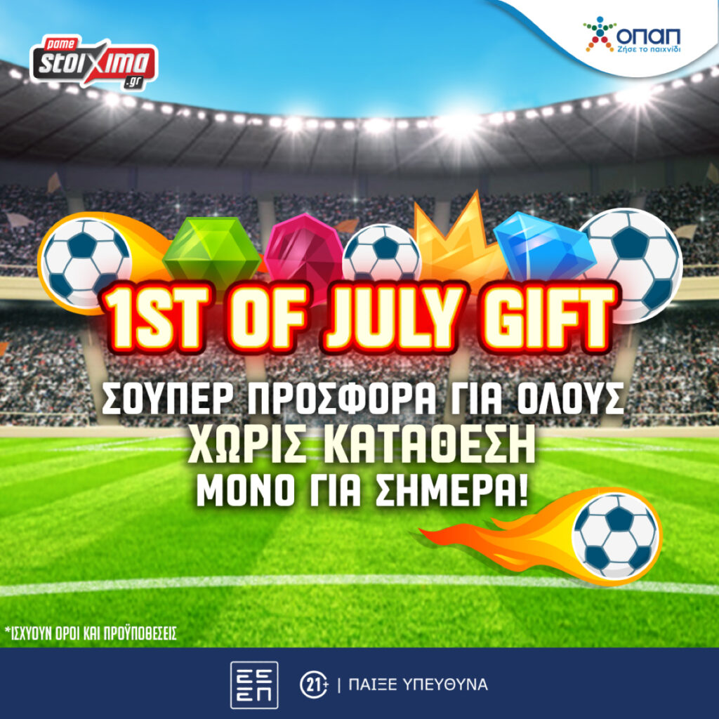 Ο Ιούλιος ήρθε, λοιπόν, και φέρνει μοναδικές εκπλήξεις* στο Pamestoixima.gr! Όπως κάθε πρώτη ημέρα του μήνα, έτσι και τώρα, το Pamestoixima.gr τους υποδέχεται όλους και μία σούπερ προσφορά* δωρεάν χωρίς κατάθεση!