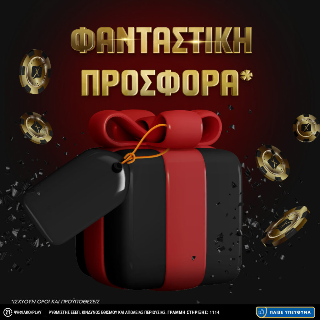 21+ |Αρμόδιος Ρυθμιστής ΕΕΕΠ | Κίνδυνος εθισμού & απώλειας περιουσίας | ΓΡΑΜΜΗ ΣΤΗΡΙΞΗΣ: 1114| Παίξε Υπεύθυνα |.