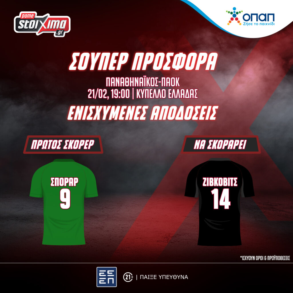 Pamestoixima.gr – Κύπελλο Ελλάδας: Παναθηναϊκός-ΠΑΟΚ με 0% γκανιότα**, σούπερ προσφορά* κι ενισχυμένες αποδόσεις στο Pamestoixima.gr! (21/12)
