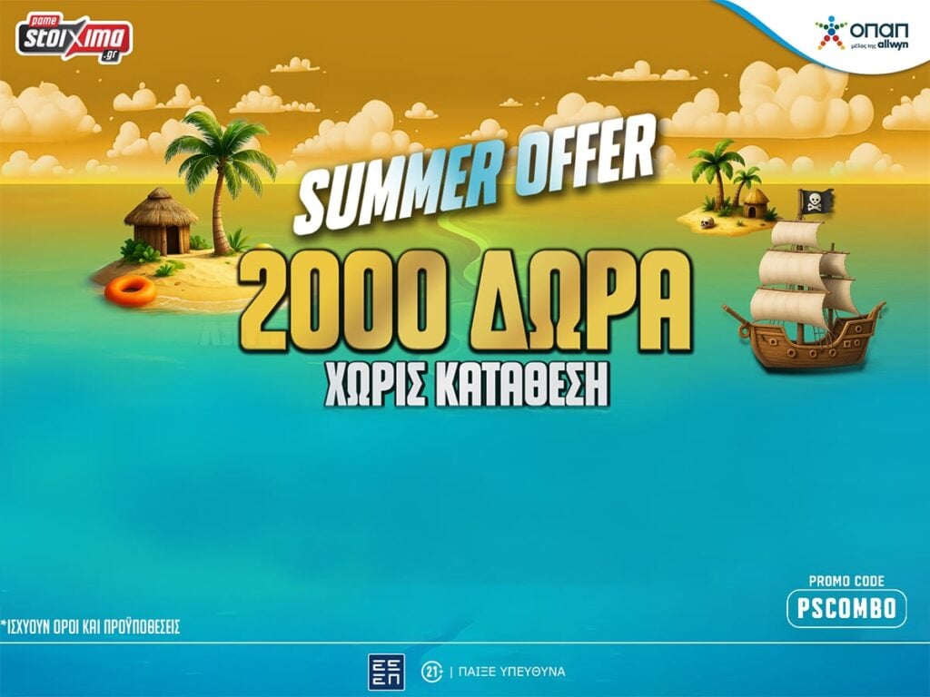 Η καλοκαιρινή δωρεάν προσφορά* του Pamestoixima.gr προσφέρει μοναδικές στιγμές διασκέδασης σε αθλητικές διοργανώσεις και live casino.