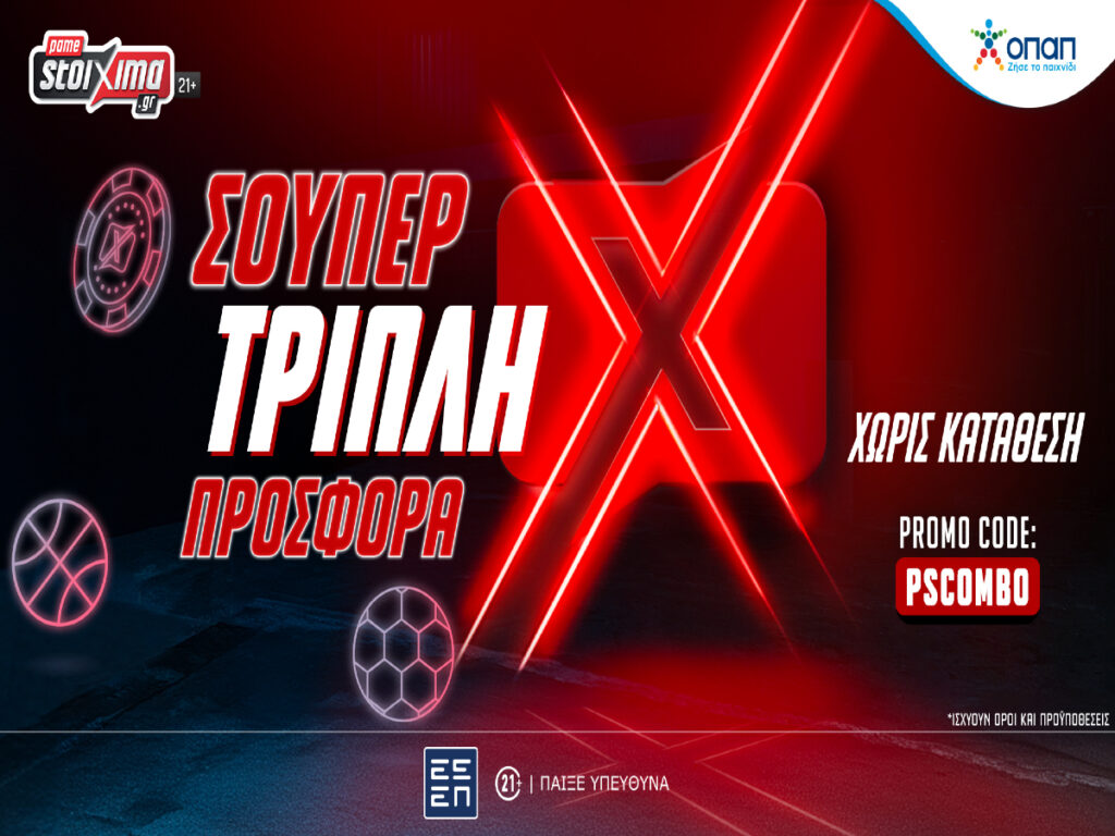 Με τον κωδικό (promo code) PSCOMBO λαμβάνεις τη μοναδική τριπλή προσφορά γνωριμίας* του Pamestoixima.gr! Μόνο για λίγες μέρες απολαμβάνεις σούπερ δώρα* χωρίς κατάθεση!