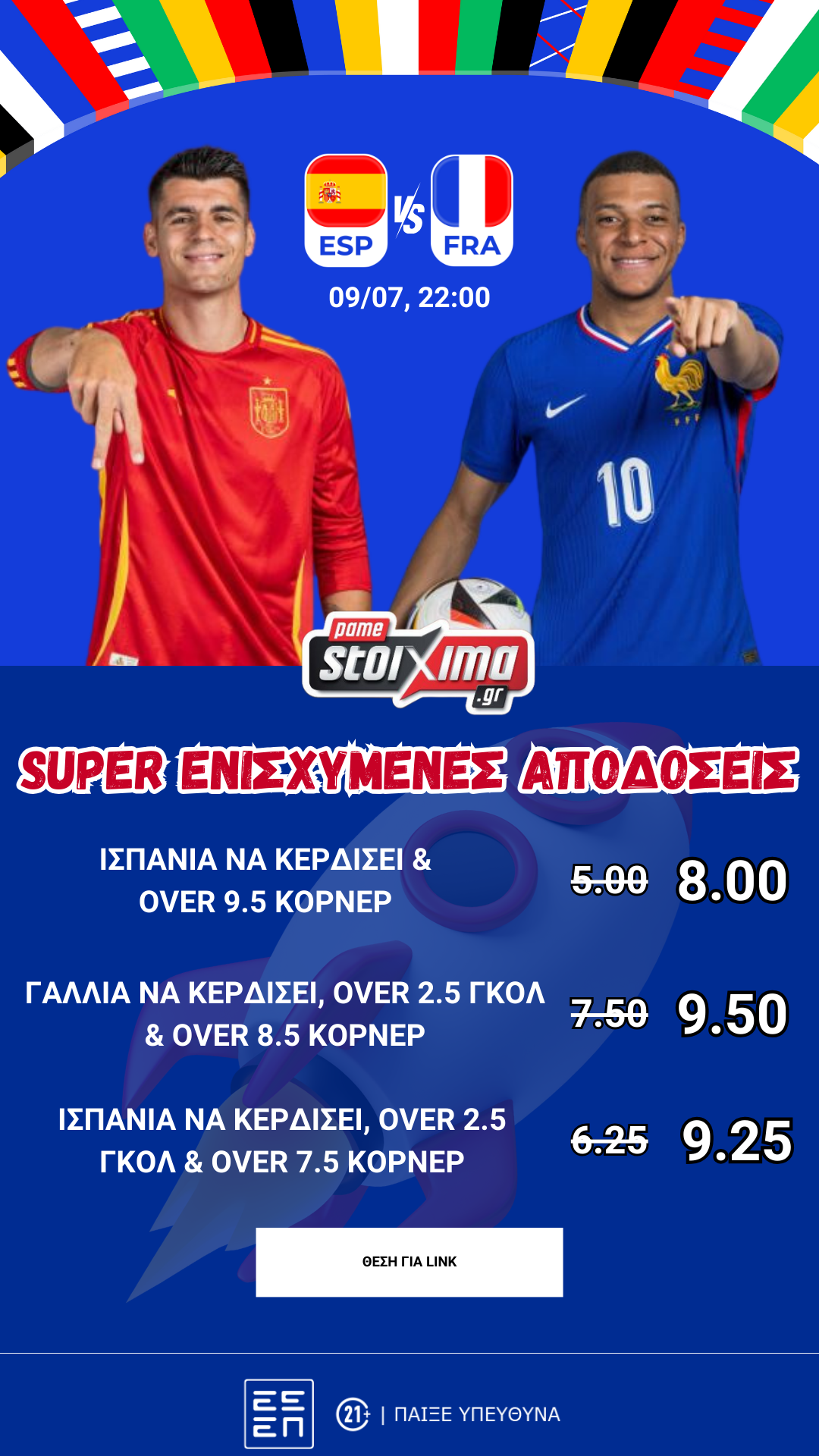 Ισπανία-Γαλλία | Σούπερ ενισχυμένες αποδόσεις στο Pamestoixima.gr