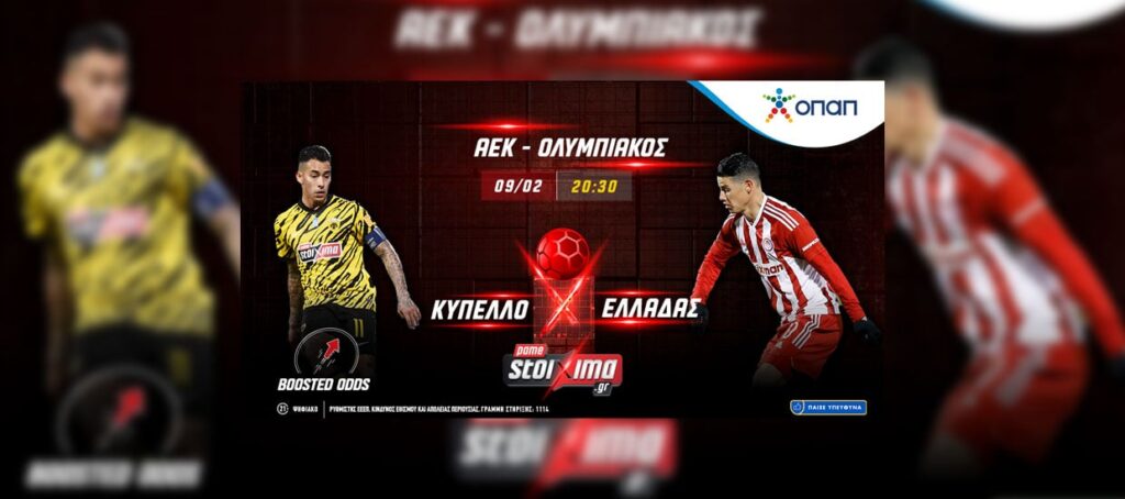 ΑΕΚ – Ολυμπιακός στο Pamestoixima.gr με Ενισχυμένη Απόδοση** στο Τελικό Αποτέλεσμα.