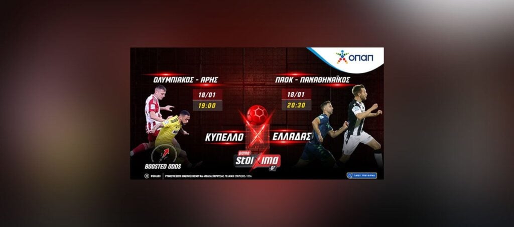 Η προημιτελική φάση του Κυπέλλου Ελλάδας αρχίζει (18/01) και στο Pamestoixima.gr μπορείς να βρεις έξτρα ενισχυμένες αποδόσεις*.