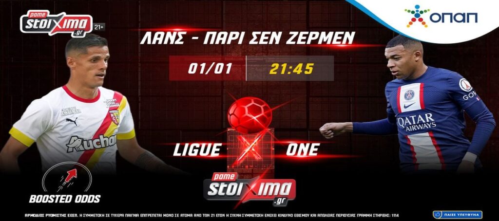 Ντέρμπι κορυφής στη Ligue 1 με Λανς – Παρί και το Pamestoixima.gr είναι εδώ και το νέο έτος με ενισχυμένες αποδόσεις* και πληθώρα στοιχηματικών επιλογών!