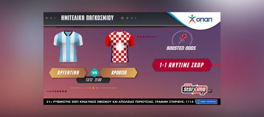 Αργεντινή – Κροατία με Ενισχυμένες Αποδόσεις στο Τελικό Αποτέλεσμα**, Επιστροφή Χρημάτων στο 0-0 (στην αγορά πρώτο σκόρερ)*.