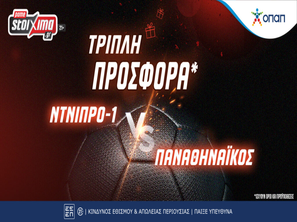 Η μεγάλη ευρωπαϊκή αναμέτρηση του Παναθηναϊκού με τη Ντνίπρο παίζει δυνατά στο Pamestoixima.gr. Εκεί σε περιμένει μια σούπερ τριπλή προσφορά*, για να ζήσεις τη δράση στο έπακρο.