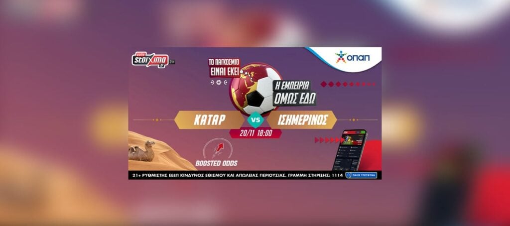 Πρεμιέρα σήμερα στο Μουντιάλ 2022 με Κατάρ – Ισημερινός και νέο αποκλειστικό παιχνίδι World Challenge στο Pamestoixima.gr για μεγαλύτερη απόλαυση!