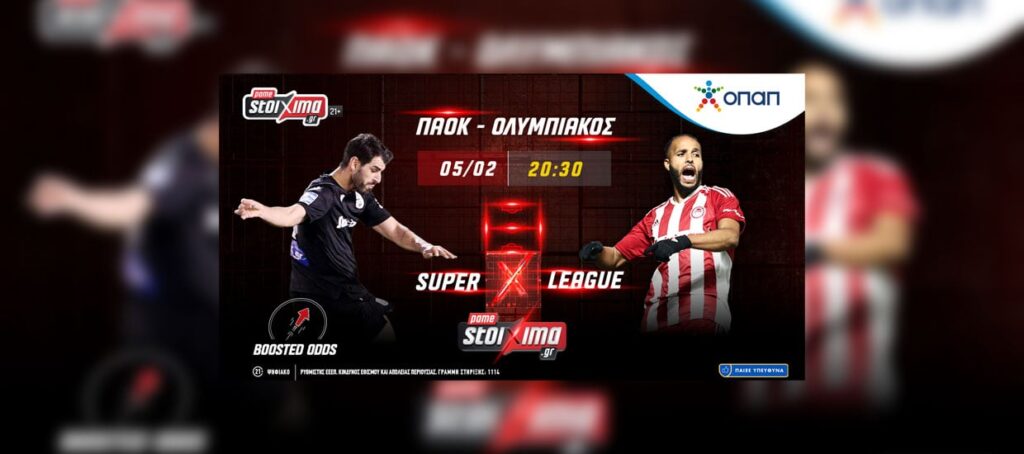 Το μεγάλο ντέρμπι ΠΑΟΚ-Ολυμπιακός της Super League στρέφει τα βλέμματα πάνω του και στο Pamestoixima.gr βρίσκεις ενισχυμένες αποδόσεις*.