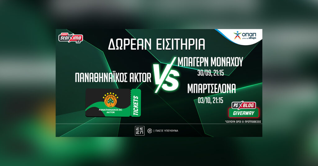 - 2 τυχεροί κερδίζουν από 1 διπλό εισιτήριο για το Παναθηναϊκός AKTOR-Μπαρτσελόνα (30/09, 21:15)