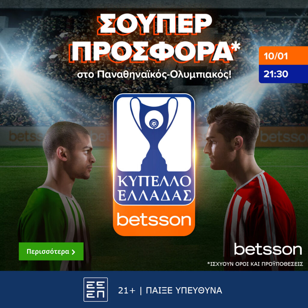 Οι μάχες στο Κύπελλο Ελλάδας Betsson έχουν τεράστιο ενδιαφέρον και παίζονται εδώ με σούπερ προσφορά*!