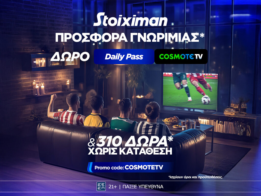 Προσφορά γνωριμίας* από τη Stoiximan με 1 μήνες Cosmote TV & επιπλέον σούπερ έπαθλα*!